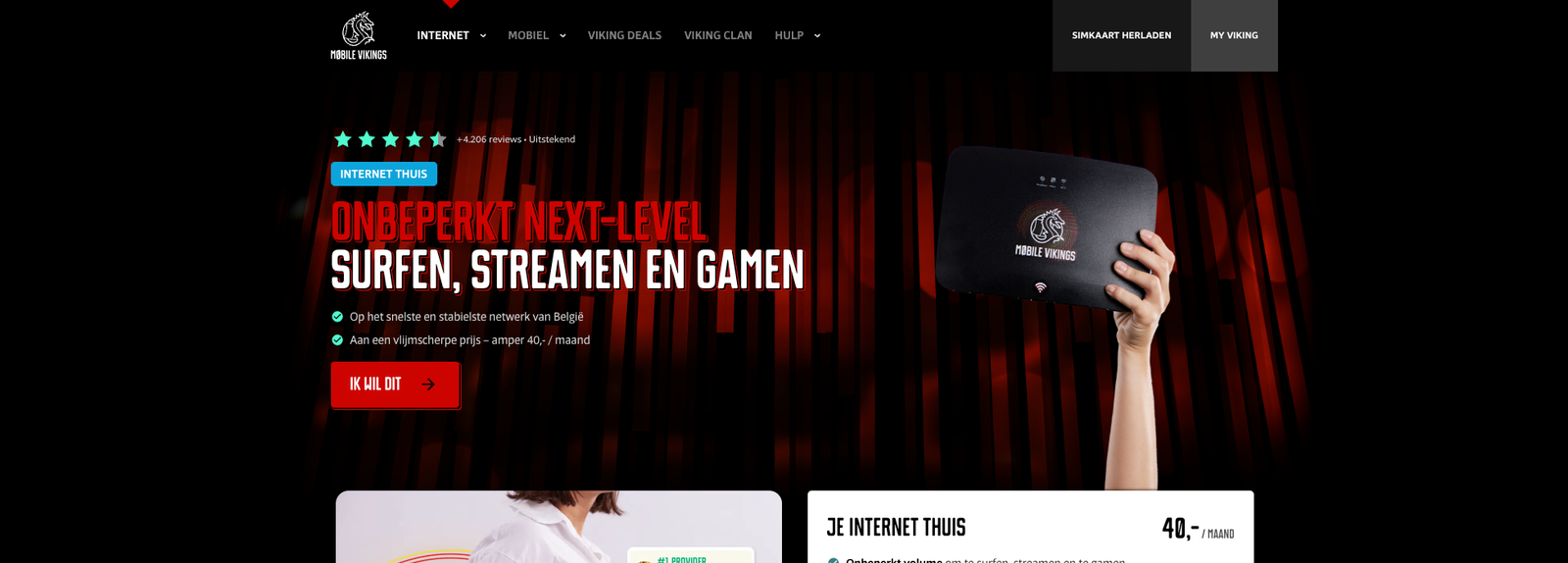 Mobile Vikings biedt één duidelijk internetproduct: onbeperkt vast internet via kabel (coax). Er zijn geen ingewikkelde bundels of keuzemogelijkheden. Je krijgt één tarief en één snelheid, zonder verrassingen.